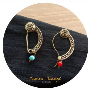 These Cute earrings are completely handcrafted with Copper and brass. Each product of Tamra -Kasya is personally made by handicraft artisan hence made with love and care. They can worn with indo-western both attire. the form of elephant is also famous with women of all ages hence its a perfect piece for gifting to loved one.