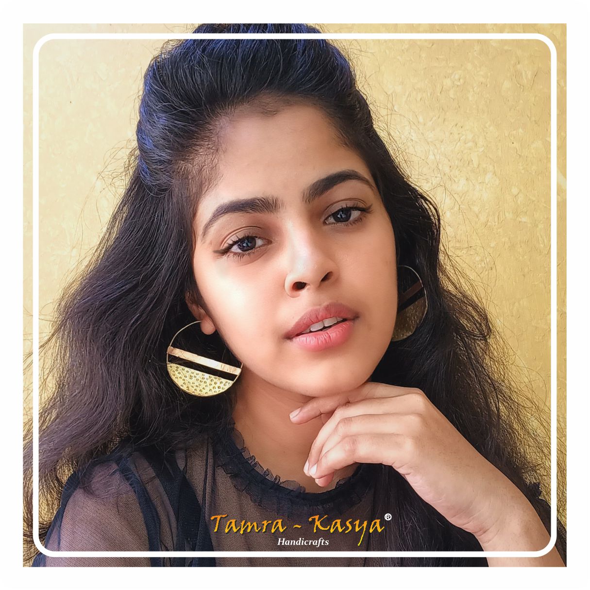 The Earring is completely handcrafted with copper and brass
